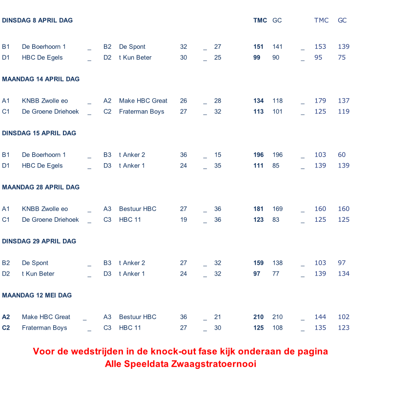 SPEELDATA EN UITSLAGEN LIBRE DAG 2025 (voor standen:
